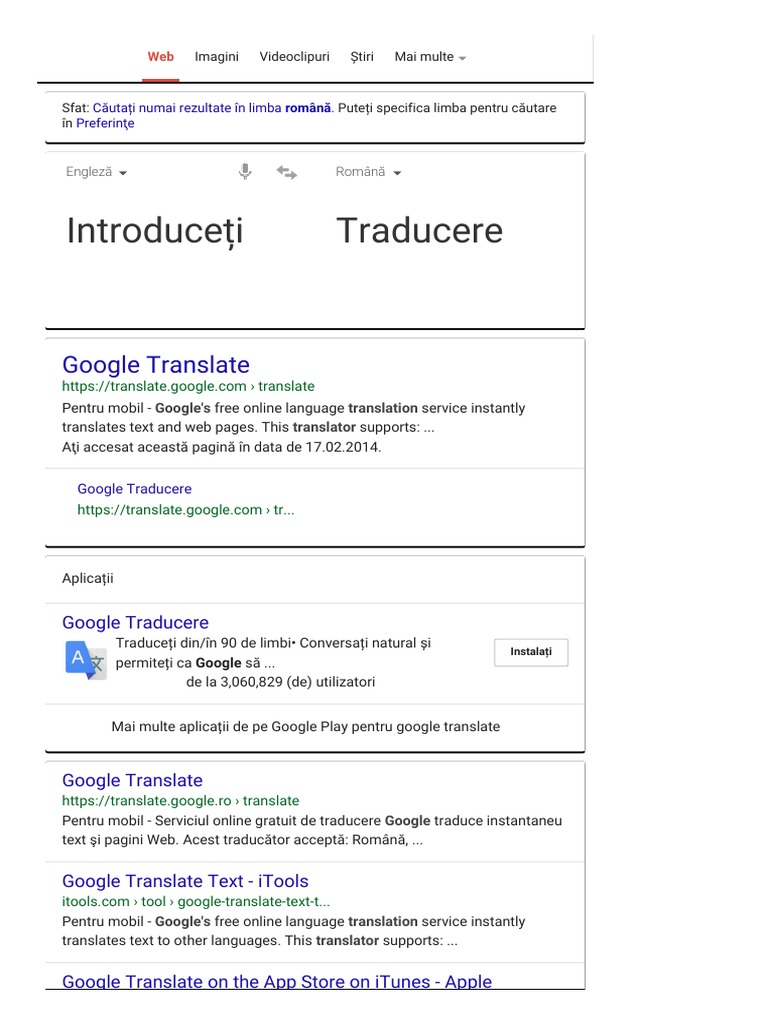 untuk "Google Translate Romana Engleza Corect"
