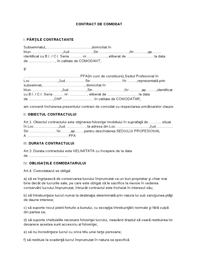 Select rating poor okay good great awesome give it 6/10 give it 7/10 give it 8/10 give it 9/10 give it 10/10. Contractul de comodat este o convenţie prin care se transferă cu caracter temporar şi sub condiţie dreptul de folosinţă asupra. Obtine un model contract de comodat pentru sediu social firma.