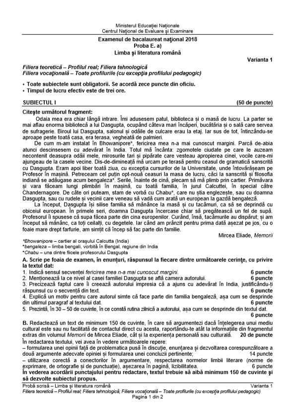 Subiecte bacalaureat 2018 edu.ro, sesiunea de toamnă.