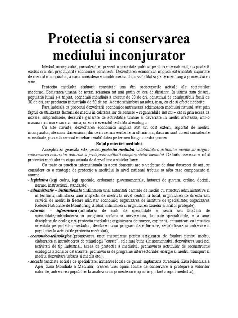 vizitati articolul complet aici : https://pt.slideshare.net/ciocanelisabeta/protectia-conservarea-si-ocrotirea-mediului » protectia mediului (compunere) izvoarele dreptului mediului mediului inconjurator in franceza protectia mediului protectia muncii referat cunoasterea mediului actiunea alcanilor asupra mediului si a oamenilor norme de protectia muncii in domeniul electric poluarea mediului. Conservarea mediului conservarea mediului înconjurător reprezintă un ansamblu de măsuri ce trebuie luate pentru prevenirea şi înlăturarea poluării, a diminuării efectelor ei asupra mediului prin folosirea de tehnologii nepoluante. Referate protectia si conservarea mediului.