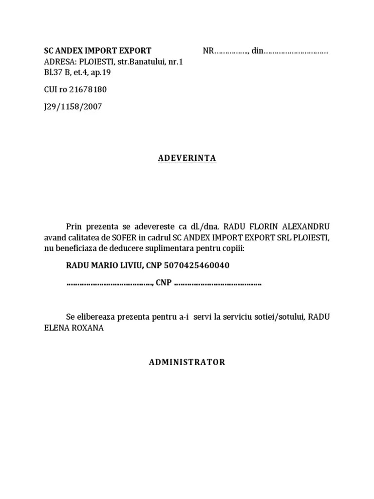 Model adeverinta deducere personala copil. Suma venitului cumulativ de la care se. Pentru copiii minori deducerea personala se atribuie fiecarui contribuabil in intretinerea caruia se afla acestia.